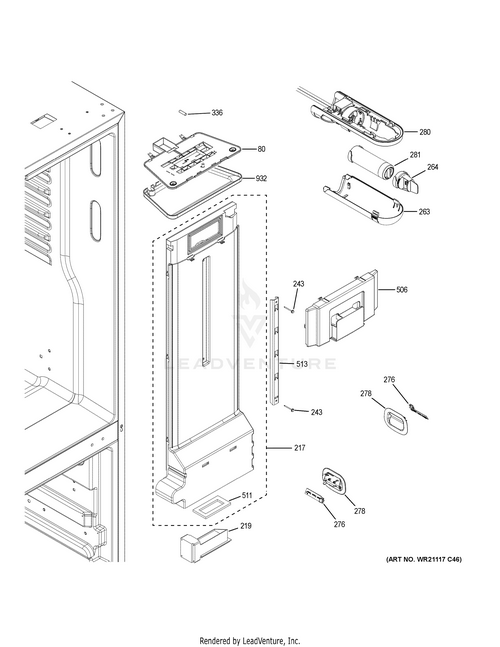 GE Replacement Fresh Food Air Duct Tower For Refrigerator, Part# Wr14x26408