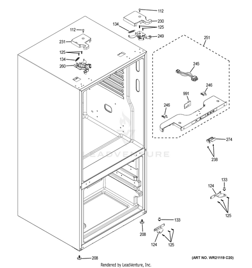 GE Replacement Center Hinge For Refrigerator, Part# Wr13x29171