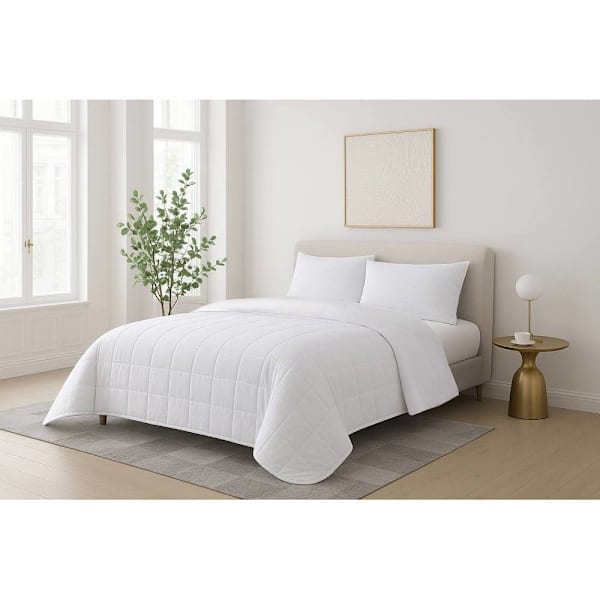 Queen 92x98 Quilted Blanket with Rounded Corners, Microfiber with Poly Fill