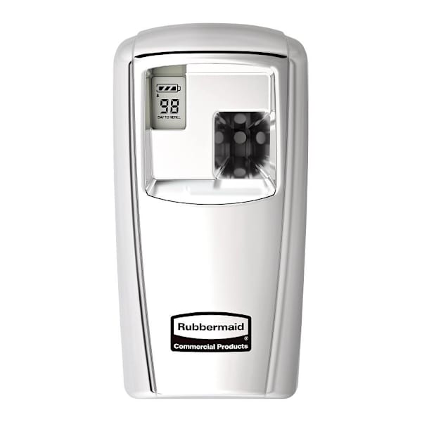 Rubbermaid Commercial Microburst 3000 Programmable Aerosol Dispenser For Odor Control, Lcd Display, Chrome, 6-Pack