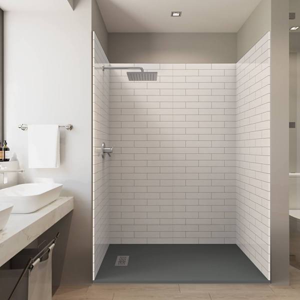 Castico 60x36x84" Solid Composite Stone Alcove Shower Kit Subway Walls