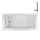 The bathtub is equipped with leveling feet, allowing for accurate height adjustment within the alcove.