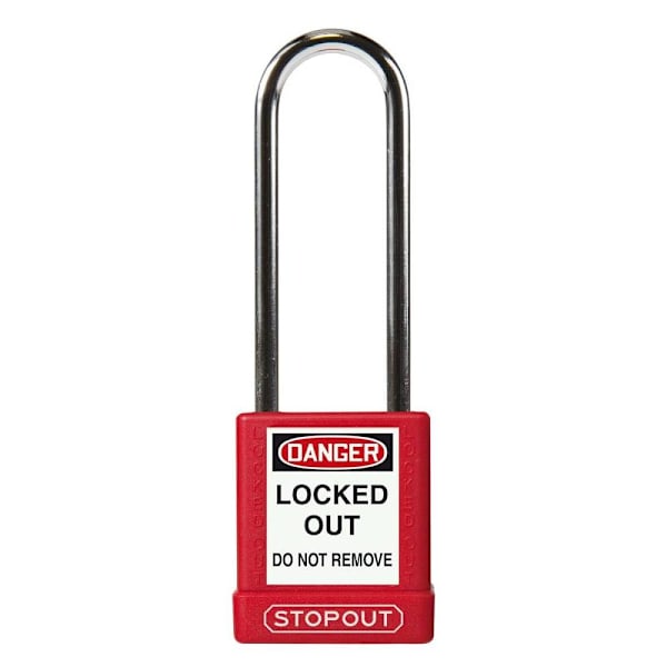 Accuform Stopout® Plastic Body Padlock 1-3/4" X 1-1/2" Body 3" Shackle Red
