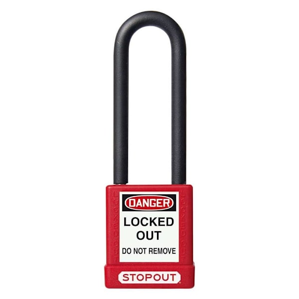 Accuform Stopout® Plastic Body Padlock With Dielectric Poly-Wrap 3" Shackle Red