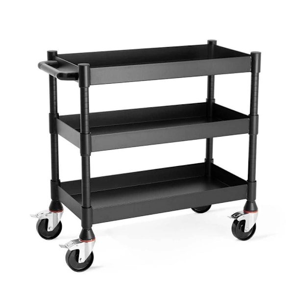 Handles up to 1,200 evenly distributed lbs. with ease. Three configurable, reversible shelves for versatile use. Premium swivel, locking casters for smooth mobility
