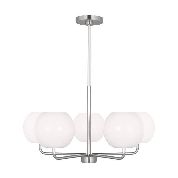 Generation Lighting Rory 5-Light Brushed Steel Chandelier With Opal Glass Shades