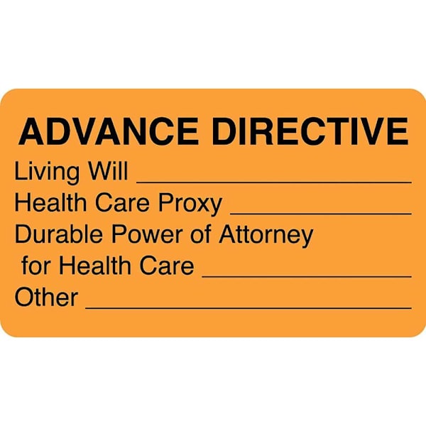 Advanced directive label clearly communicates and documents wishes regarding health care.