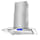 Ductless island range hood with ultra-quiet design and glass visor, carbon filter kit is included for ductless and recirculating installation