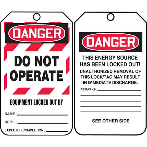 ACCUFORM Lockout Tag, DANGER DO NOT OPERATE EQUIPMENT LOCKED OUT BY, 5 3/4" x 3 1/4", PF-Cardstock, 25/PK