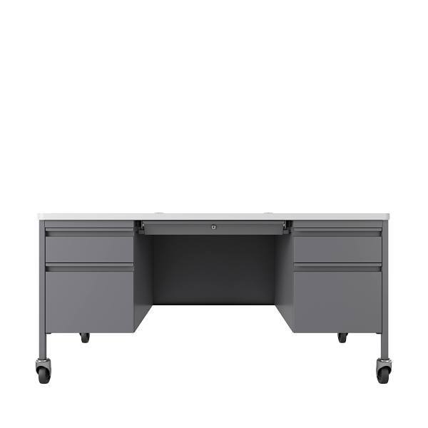 Hirsh 30"Dx60"W Mobile Double Pedestal File Desk Rnd Crnr T-Mold Platinum/White