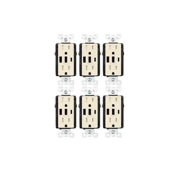 Elegrp 30W 3-Port USB Wall Outlet Dual Type A&C Ports Matte Almond