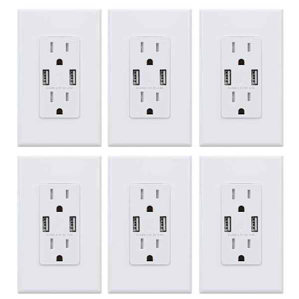 Elegrp 4a Dual Type A USB With 15a Duplex Outlet, White, Package Of 6