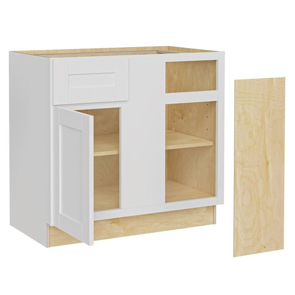 Express Shaker Vesper White Assembled Plywood Blind Base Corner Kitchen Cabinet 42 in. W x 24 in. D x 34.5 in. H LH