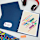 Left pocket features a die-cut business card holder