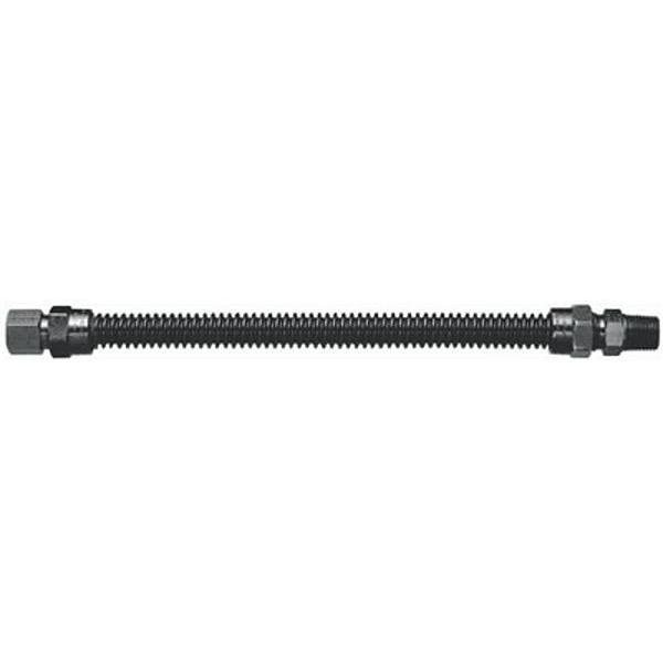 Stainless Steel Gas Hearth Connector, Black Coated, 3/8 in. OD, 1/4 in. ID, 1/2 in. MNPT x 1/2 in. Mnpt, 24 in. L