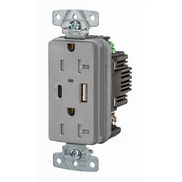 Hubbell 20 Amp USB Duplex Receptacle, Type A / C, Gray,
