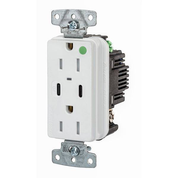 Hubbell Wiring Devices 15a Hospital Grade USB C Power Delivery Rec White
