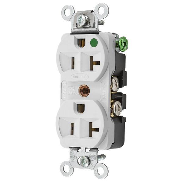 Hubbell® Straight Blade 20 Amp 125 Volt Compact Hospital Grade Duplex Receptacle (White)