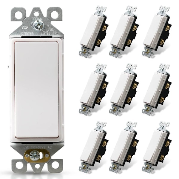 Maintenance Warehouse 15 Amp Single-Pole Rocker Light Switch in White 10-Pack