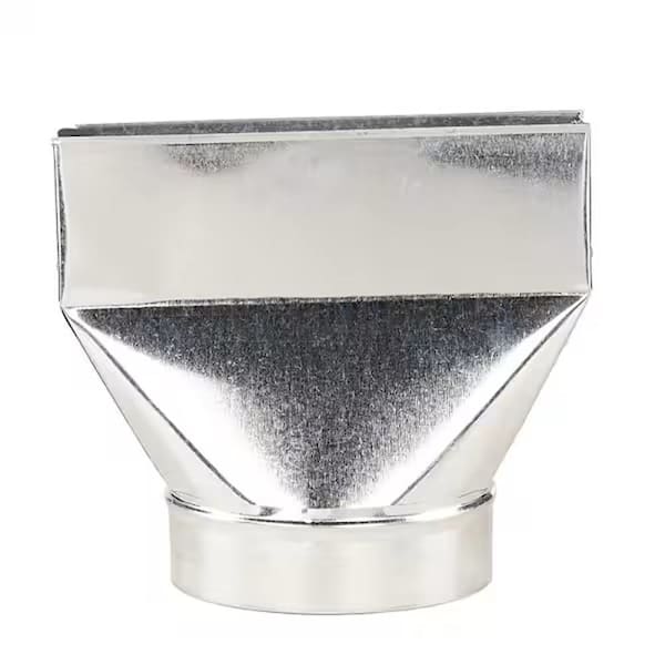RB12X4X6 is a galvanized steel universal register box that provides a straight, in-line transition between a 12 in × 4 in register opening and a 6 in HVAC round pipe or flexible duct.