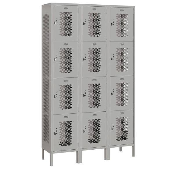• Salsbury 15" Wide Four Tier Vented Metal Locker - 3 Wide - 6 Feet High - 15 Inches Deep - Gray - Unassembled