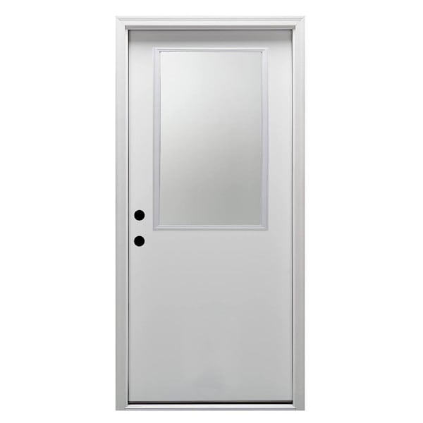 MMI Door 36"x80" RH 1/2-Lite Clear Glass Prehung Front Door On 4-9/16" Frame