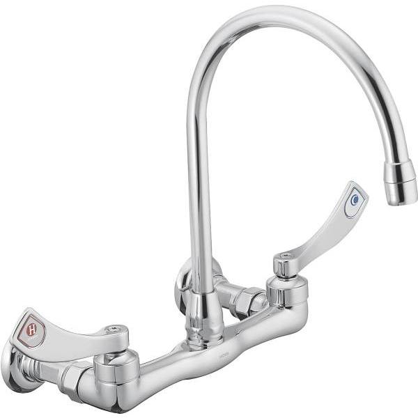 Moen M-Dura Comm 2-Handle Wall Mounted Kitchen Faucet, Chrome Wristblade Handles