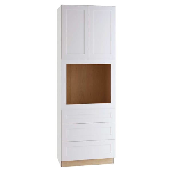 Newport 33 in. W x 24 in. D x 96 in. H Assembled Plywood Double Oven Kitchen Cabinet in Pacific White with Soft Close