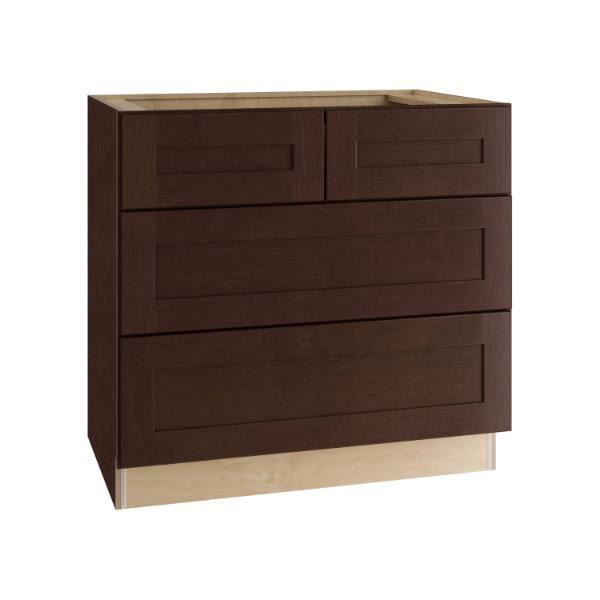 Features a false top-drawer front to accommodate drop-in cooktop,an integral toe kick for added strength and bottom shelf support,solid wood dovetail drawer boxes with full extension soft close drawer glides