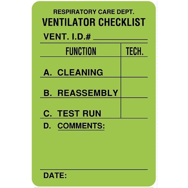 Ventilator label makes cleaning, checking and testing quicker and easier.
