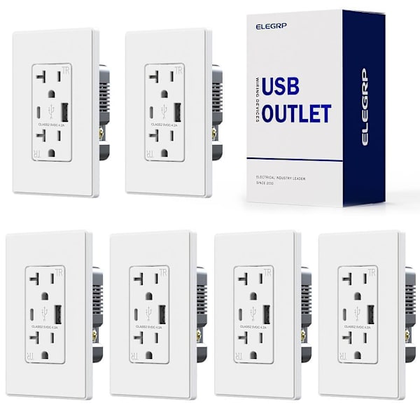 Elegrp 21W Dual Type A & Type C USB Outlet, 20 Amp, White,