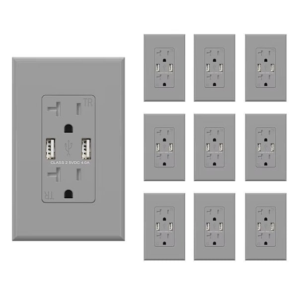 Elegrp 4A Dual Type A USB With 20A Duplex Outlet, Gray,