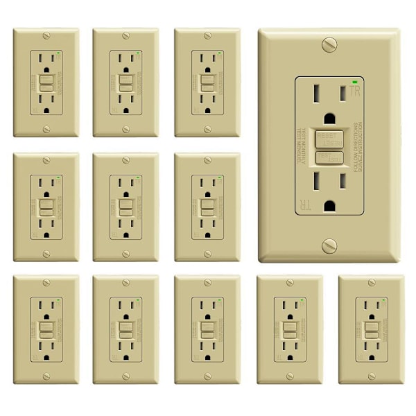 Maintenance Warehouse 15 Amp 125-Volt Tamper-Resistant Self-Test Gfci Receptacle With Wall Plate In Ivory 12-Pack