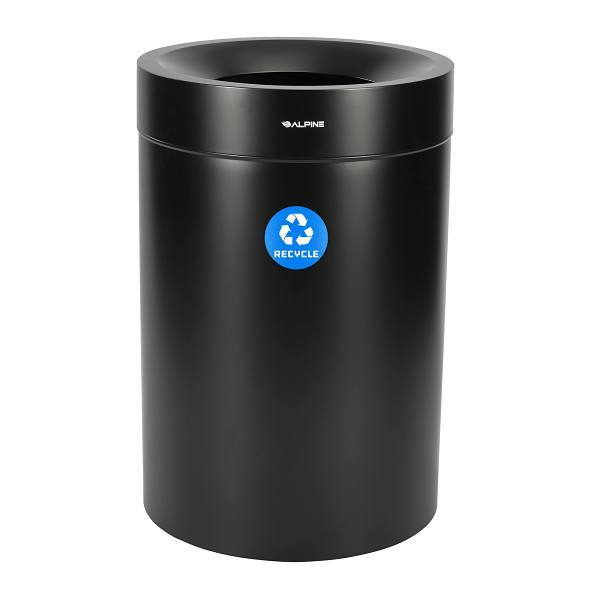 Alpine Industries 50 Gallon Stainless Steel Recycling Can Receptacle in Black