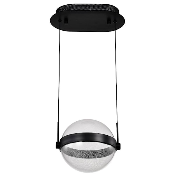 Arvada LED 8.75-inch pendant finished in matte black with silk screened acrylic lens