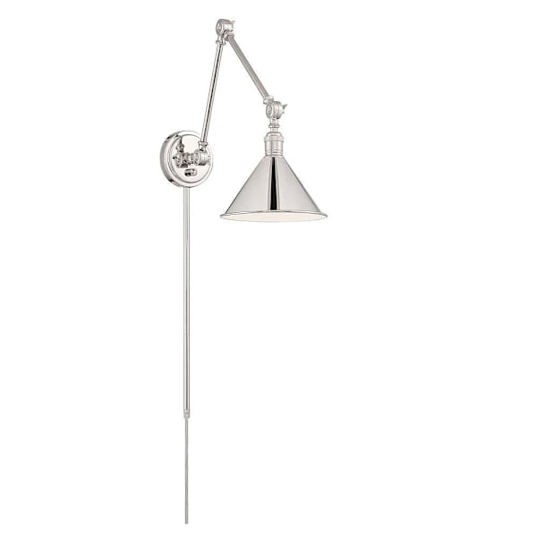 Satco Delancey Swing Arm Fixture With Switch, Medium Base, Polished Nickel