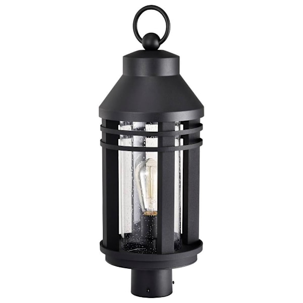 Satco Wilton 1 Light Post Top Lantern With Clear Seeded Glass, Matte Black