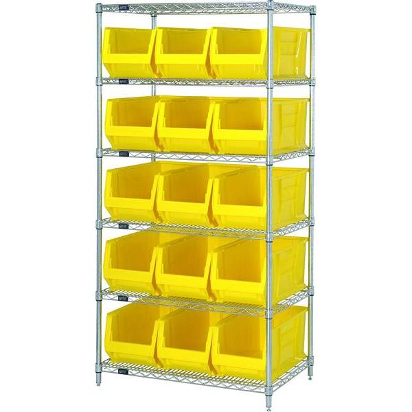 Quantum Storage Systems Wire Shelf Unit With 15 Yellow Hulk Container, 24x36x74