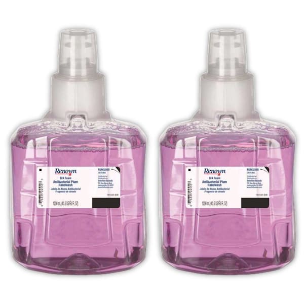 Case includes 2 Renown EFA Antibacterial Plum Scent Foam Handwash 1200 mL Refills