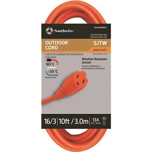 Southwire 10 Ft 16/3 Vinyl Outdoor Sjtw Extension Cord, Orange