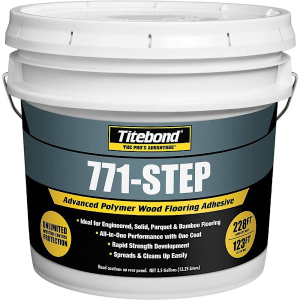 Titebond 771-Step is most often used to secure solid wood, bamboo, cork, and engineered hardwood flooring. It can also be used to install plywood, ceramic tile, marble, cork underlayment, rubber sports flooring, and stone inlays for residential and commercial applications.