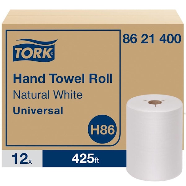 Tork Paper Hand Towel Roll for Mini Dispensers, Universal, Natural White, H86 (12 Rolls x 425 Ft)