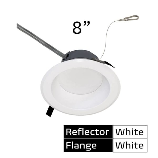 Halco 8" Commercial Downlight, Selectable Lumen & Cct, Dimmable, White Flange