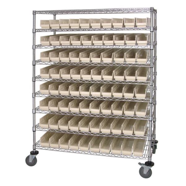 Quantum Storage Systems Wire Catheter Cart With 80 Ivory Bins, 24" X 48" X 69"