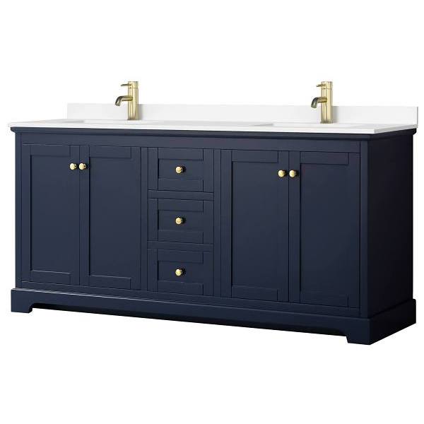 Countertop with porcelain undermount square sink(s) is drilled for single-hole faucet mounts. Faucet(s) not included. Metal exterior hardware with brushed gold finish