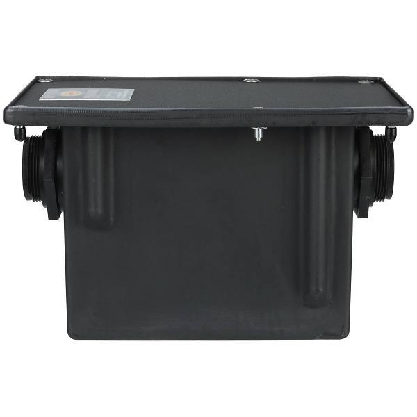 Trap is furnished with NPT connections, removable flow diffusing baffles and external vented flow control device, making it adaptable for different applications